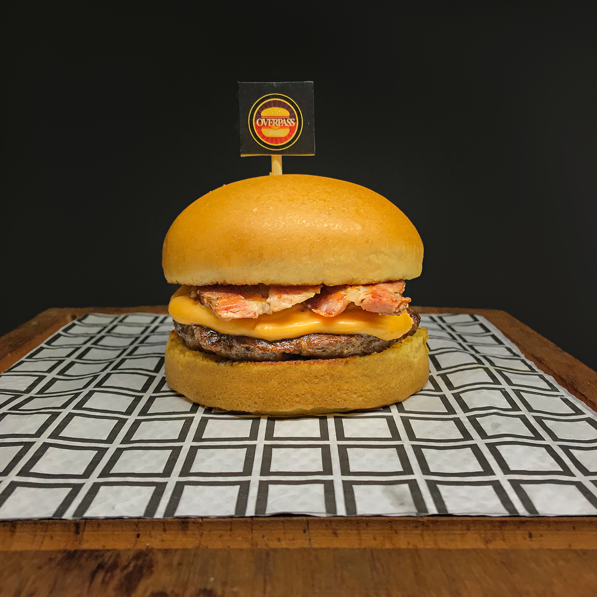 Pão e molho da sua escolha, Hamburguer artesanal de 150g, cheddar cremoso e bacon