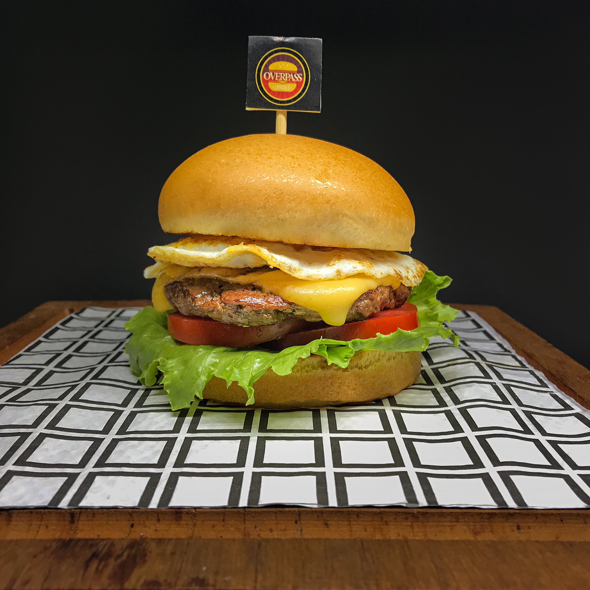 Pão e molho da sua escolha, Hamburguer artesanal de 150g, queijo, alface americana, tomate e ovo